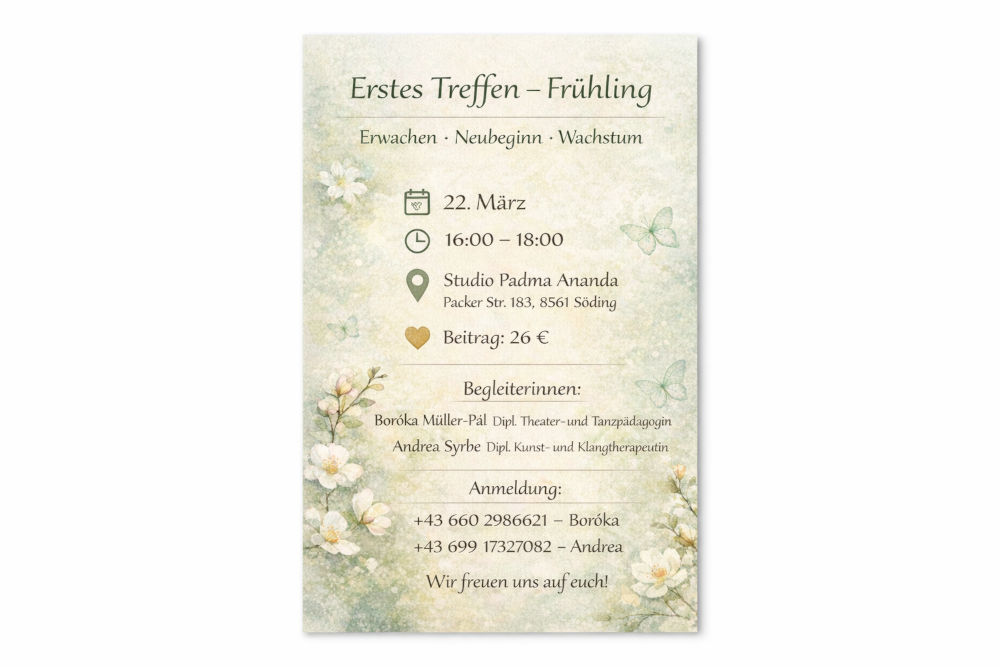 Mein Name ist Andrea Syrbe – ich bin Dipl. Kunst- & Klangtherapeutin und Mama von drei Töchtern. Ursprünglich komme ich aus Ungarn, seit 2012 lebe ich in Österreich.
